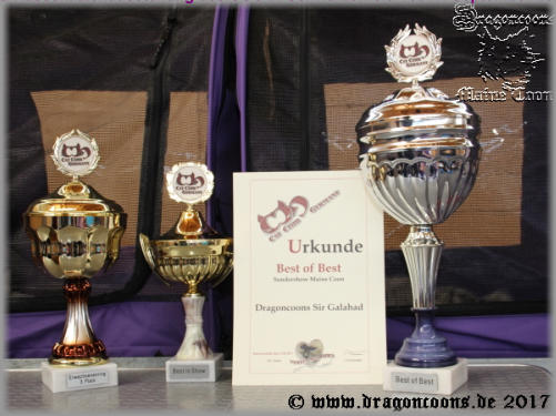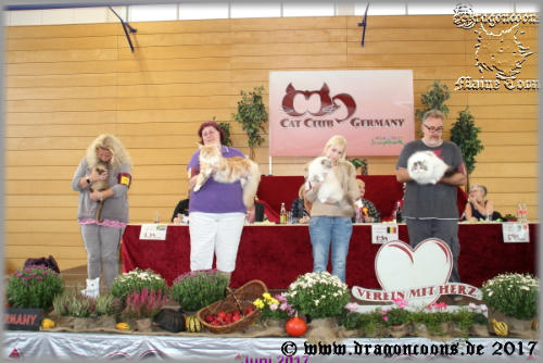 Wir waren am 07.10.2017 auf der Int. Rassekatzenausstellung in Ulm beim Crystal PalaceWir sind sehr stolz auf unsere eigenen Nachnzchten und Ihre Erfolge auf der Ausstellung des Crystal Palace am 07.10.2017 in Ulm.Dragoncoons Sir Galahad 2 x CAGCIB und nom. f. Best in ShowDragoncoons Grace Kelly 2 x CAGCIB , Best in Variety und nom. f. Best in ShowDragoncoons N2-Wurf (12 Wochen) machte Ex. 1 von 3 Würfen, nom. f. die Best in Show machte BEST IN SHOW BEST OF BEST Maine Coon Wurf und Wurf BEST OFER ALL gegen einen Norwerger-Wurf, einen Heilige-Birma-Wurf und einen Briten-WurfDragoncoons Night-Fire (12 Wochen) machte 1 x CACP , nom. f. die Best in Show und machte BEST IN SHOW gegen ältere KonkurenzDragoncoons Neverending Love (12 Wochen) machte 1 x CACP , Sonderpreis , nom. f. die Best in Show und machte BEST IN SHOW 3:1Dragoncoons New-Style (12 Wochen) machte 1 x CACP , nom. f. die Best in Show , die jedoch ihre Schwester für sich entscheiden konnte 3:1September 2017Int. Rassekatzenausstellung des Hungaro Cat Club in Eger / Ungarn 23./24.September 2017Auch wir sind wider zurück von der Ausstellung des Hungaro Cat Club in Eger / Ungarn. Wir sind sehr stolz afuf unsere Nachzuchten die tolle Ergebnise erziehlen konnten.Dragoncoons Sir Galahad 1 x CACIB und 1 x CAGCIB , Leider konnte er sich mit seinen grad mal 10 Monaten nicht gegen einen 4 Jahre alten, black/white bicolor Kater durchsetzten für die nom. zur Best in Show . Am Samstag 1. Platz von 5 im Ring Silver Cats , am Sonntag 4. Platz von 27 im WCF Ring Adult und 8. Platz von 11 im Green-eyed Ring.Dragoncoons Grace Kelly 1 x CACIB und 1x CAGCIB , beide Tage nom. f. Best in Show. Am Samstag 3. Platz von 5 im Ring Silver Cats , am Sonntag 9. Platz von 27 im WCF Ring Adult und 10. Platz von 11 im Green-eyed Ring.Maid Marian of Beauty Wizards 2 x EK , beide Tage nom. f. Best in Show. Am Sonntag Best in Variety gegen 7 Adulte Tiere und Best in Show / Best Opposite Sex. Am Sonntag 2. Platz von 11 im Green-eyed Ring und 3. Platz von 27 im WCF Ring Adult Int. Rassekatzenausstellung des CCG in Schwarzenfeld 16./17. September 2017Wir sind zurück von der gut organisierten Ausstellung des CCG in Schwarzenfeld und mega stolz auf unsere Nachzuchten.Champion Dragoncoons Sir Galahad (10 Monate)Samstag: 1 x CACIB , 3. Platz im Europäischem Ring Adult , nom. für Best in ShowSonntag: 1 x CACIB , nom. Best in Show, machte BEST IN SHOW 3:2 und machte dann noch BEST OF BEST MAINE COON , 4. Platz Best over all !!!Champion Dragoncoons Grace KellySamstag: 1 x CACIB , nom. f. Best in Show Sonntag: 1 x CACIBGr. Europa Champion Maid Marian of Beauty WizardSamstag: machte ihren letzten CACM Punkt bei Fr. Wisemann und ist ab sofort WORLD CHAMPIONSonntag : 1.Platz EhrenklasseJunior Champion Dragoncoons KylianSamstag und Sonntag: je 1 x CACP und nom. f. Best in Show , konnte sich aber mit seinen grad mal 4 Monaten gegen die wesentlich ältere Konkurenz nicht durchsetztenDragoncoons King LeamSamstag und Sonntag: jeweil Ex 2 da das Ex 1 an seinen Bruder Kylian ging :-Juni 2017Int. Rassekatzenausstllung des PCCA in Aspach/Österreich am 03./06.Juni 2017Wir sind zurück von einem für uns s e n s a t i o n e l l e m Ausstellungswochenende beim PCCA in Aspach und uns fehlen noch immer die richtigen Worte.Wir sind M e g a stolz über die Ergebnisse unsere Nachzuchten und möchten uns beim gesamten Richterteam für die tollen Bewertungen Bedanken. Ebenfalls ein großes Dankeschön an das neue Team des PCCA für die lockere, typisch Österreichische gestaltung der Show :-)Junior Champion Dragoncoons Sir Galahad mit grad mal 6 Monaten 3 WochenSamstag: 1 x CACJ , 2. Platz Jungtierring als beste Maine Coon, nom. f. BIS, machte Best in Show und auch noch gegen mega starke Konkurenz BEST OF BEST Maine Coon und den 2. Platz Best ofer all !!!Sonntag: 1 x CACJ , 2. Platz Jungtierring als Beste Maine Coon, nom. f. BIS , machte BEST IN SHOW und auch noch gegen mega starke Konkurenz BEST OF BEST Maine Coon und den 2. Platz Best ofer all !!!Junior Champion Dragoncoons Grace KellySamstag: 1 x CACJ , nom. f. BIS und machte BEST IN SHOWSonntag: 1 x CACJ , nom. f. BIS und machte BEST IN SHOWGr. Int. Ch. Enterprise of Englands RoseSamstag: 2 x V2 , Sonntag: 1 x CACE , Sonderpreis, nom. f. BISGr. Europa Champion Glücksboten´s NalaniSamstag : 1 x CACM und nom. f. BIS Sonntag: 1 x CACM und nom. f. BISWorld Champion Da Vinci von AlveranSamstag : 1 x EK und nom. f. BIS Sonntag: 1 x EK und nom. f. BISNächste Seite